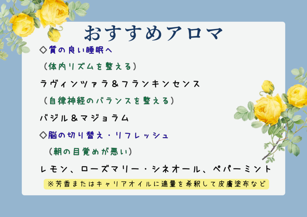 香り、肌触り、静かな音などで「今ここ」に戻すと、回復モードに入りやすいです。